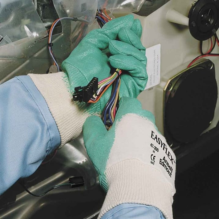 A könnyű és rugalmas Ansell Easy Flex munkavédelmi kesztyű szakítás, átszúrás, vágás, dörzsölés kockázatainak ellenálló modell.