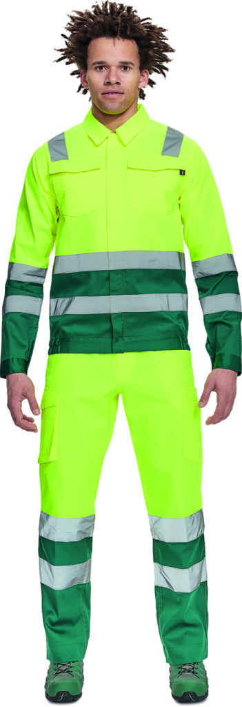 Külső: 65 % poliészter , 35 % pamut, 195 g/m? HI-VIS külső: 50 % poliészter , 50 % pamut, 200 g/m?, LUMICOTEX