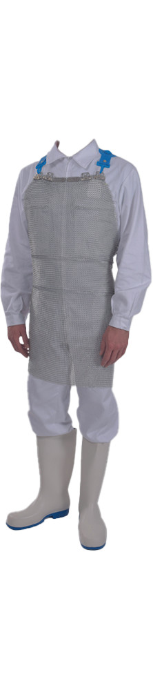 The 100% stainless steel protective apron will provide you with excellent body protection, comfort, flexibility and durability for safe work; the upper part of the apron is equipped with four fixing points; the LIGHTINOX series is recommended when using a hand knife or cutting tools in the butchery, especially when deboning or cutting meat and fish; must not be used to protect against hazards associated with moving machinery; the stainless steel mesh of the LIGHTINOX apron is approved for contact with foodstuffs; the apron can be cleaned using a suitable washing gun, soaking, intensive brushing or in the washing machine; in all cases, the water with the added preparation must have a maximum temperature of 63 °C; keep cool and dry; W 55 cm x H 80 cm
