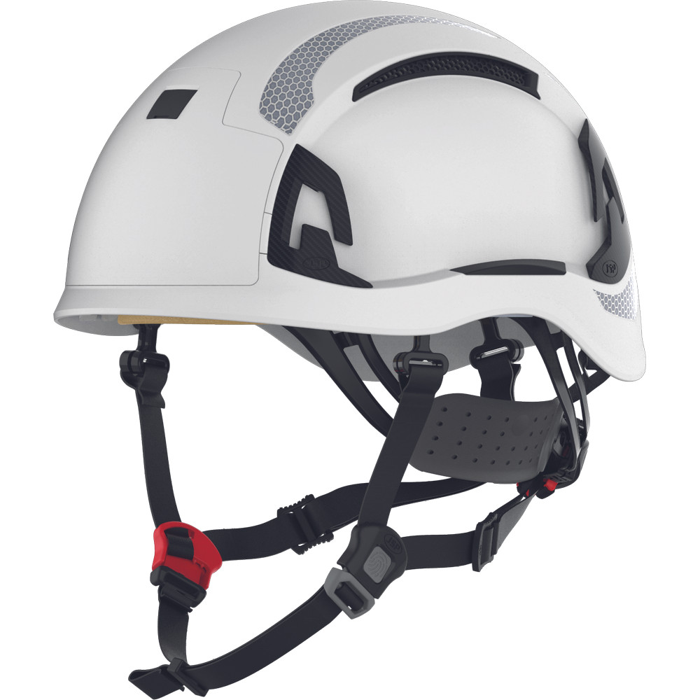 Az új JSP EVO® ALTA™ sisak megerősített héjszerkezetének és hatékony belső bélésének köszönhetően minden irányból megbízható ütésvédelmet nyújt. A kialakítás fokozza a tartósságot és javítja az ütéselnyelést. A precíz méretállítás biztosítja, hogy a sisak stabilan és biztonságosan illeszkedjen a fejre. A sisak rugalmas rendszerként lett kialakítva, beépített rögzítési pontokkal és cserélhető elülső modullal, amely megkönnyíti a különféle kiegészítők – például fejlámpák – csatlakoztatását. A JSP EVO® ALTA™ DualSwitch™ modell különlegessége a DualSwitch™ rendszer, amely lehetővé teszi a felhasználó számára, hogy egyszerűen válthasson az EN 12492 (magasabb szintű ütésvédelem, pl. magassági munkákhoz) és az EN 397 (általános ipari használatra vonatkozó) szabvány között, egy kapcsoló segítségével az állszíjon. A négy pontos rögzítés maximális biztonságot és kényelmet nyújt viselés közben. A sisak ütésvédelmet biztosít felülről, oldalról, elölről és hátulról, az meghosszabbított tarkórész pedig extra védelmet ad a nyakszirti terület számára is. A sisak egyedülálló, cserélhető elülső modullal rendelkezik, kétféle kivitelben: Beépített igazolványtartóval, a dolgozók egyszerű azonosításához; Sima előlap, amely ideális vállalati logó elhelyezésére Mindkét változat kompatibilis fejlámpákkal és más kiegészítőkkel.