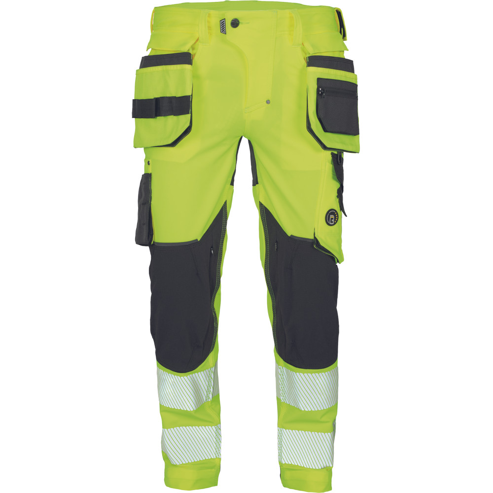 Férfi HI-VIS munkanadrág egyedi négyirányú stretch anyagból, Trifibetex-VIS® alapanyagból, melyet 2 eltávolítható, multifunkcionális lengőzseb egészít ki