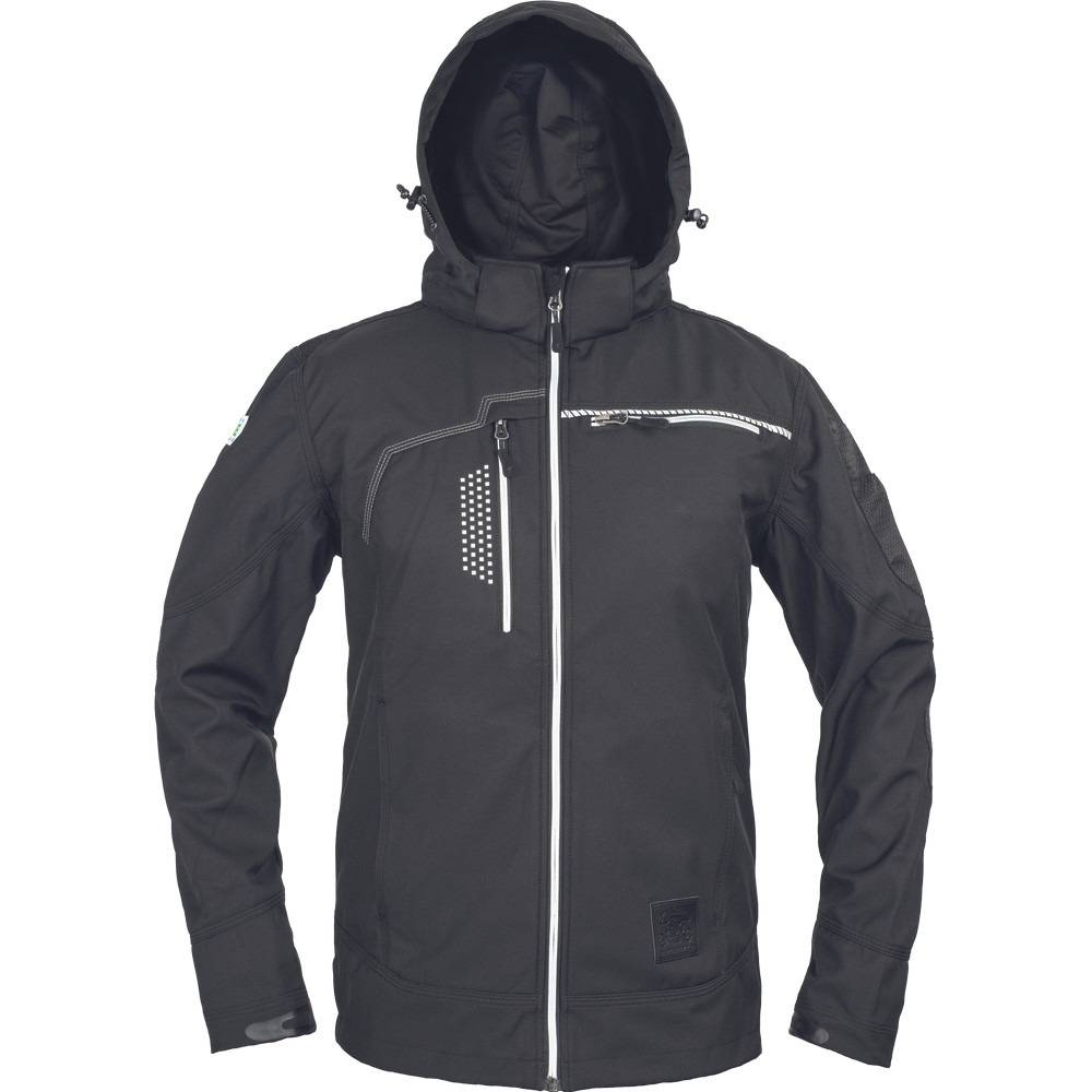 Modern szabású softshell dzseki, fényvisszavető cipzár, cipzáras napoleon zseb jobb oldalon (reflex cipzár), fülhallgató tartóval, Cordura megerősítés a váll-és a könyökrészen, levehető kapucni, kontrasztos varratok, fényvisszavető jelzőfolt és részletek, azonosítókártya a bal mellzsebre csatlakoztatható.