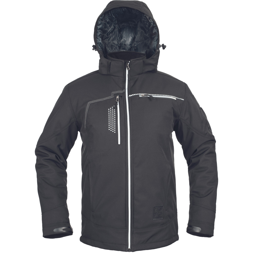 modern szabású téli softhsell dzseki steppelt béléssel, fényvisszavető cipzárakkal, cipzáras mellzsebekkel