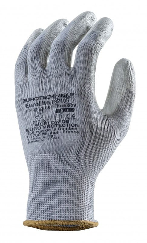 COVERGUARD 1PUB Eurolite 13p105 szürke precíziós pes kesztyű, pu tenyér 8