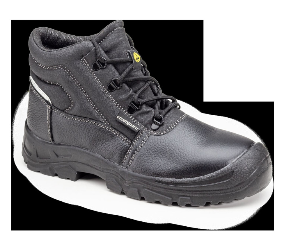 A Coverguard munkavédelmi bakancsa ESD tulajdonságoknak köszönhetően kiválóan alkalmas elektrosztatikus környezetben való használatra is. Strapabíró, színbőr felsőrésze vízálló, így ellenáll a napi használat során keletkező kopásoknak és szárazon tartja viselője lábait az esős napok során is. A munkabakancs acél orrmerevítője a leeső tárgyakkal, míg acél talplemeze pedig a talpátszúrás ellen nyújt maximális védelmet. PU orrborítása extra mechanikai és folyadék elleni védelmet garantál. A védőbakancs szivacsos bokarésze és békanyelve kényelmes viseletet biztosít. Belső bélése szellőző és nedvszívó képességének köszönhetően higiénikusan tartja viselője lábait. A puha talpbetét további komfortot nyújt a hosszú munkaidő alatt is. Antisztatikus, üzemanyag- és olajálló talpa csúszásbiztos, így maximális tapadást és csúszásmentességet garantál. Ez a munkavédelmi bakancs ideális választás minden olyan munkahely számára ahol fontos a biztonság és a kényelem egyaránt.