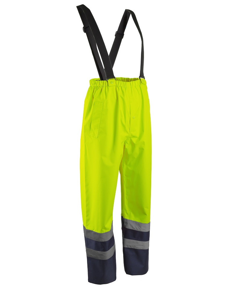 A Covergaurd láthatósági esőnadrágja tökéletes választás azok számára, akik megbízható, kényelmes és praktikus védelmet keresnek az esős, szeles időjárás ellen. A nadrág kiváló minőségű anyagokból készült, és többféle praktikus funkcióval rendelkezik, amelyek biztosítják a maximális komfortot és biztonságot. 100% Oxford 300D poliészter anyagát poliuretánnal vonták be. Ez a 180 g/m² vastag, tartós anyag kimagasló védelmet nyújt a nedvesség ellen, így biztosítva a vízállóságot és a hosszú élettartamot. Hegesztett varratai garantálják, hogy ne szivárogjon be a víz a varratokon keresztül a nadrág alá, ezáltal teljes körű védelmet biztosítva a viselőjének. Szárain 5 cm széles fényvisszaverő csíkokkal rendelkezik, melyek növelik viselője láthatóságát gyenge és rossz látási viszonyok esetén. Gumírozott dereka tökéletes illeszkedést és stabilitást biztosít mozgás közben. Levehető, gumírozott vállpántokkal is rendelkezik. Az állítható, patenttal szűkíthető szárak pedig lehetővé teszik, hogy a nadrág szorosan illeszkedjen a bokához, ezáltal megakadályozva a víz bejutását és biztosítva a maximális kényelmet. Ideális választás építőipari munkások, közúti dolgozók és mindenki számára, akik ki vannak téve az időjárás viszontagságainak. A tartós anyagok, a vízállóság és a láthatóságot növelő fényvisszaverő szalagok biztosítják, hogy ez az esőnadrág megbízható társ legyen a legkeményebb körülmények között is.
