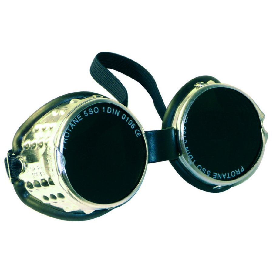 Keret: hőálló alumínium, rögzítés: állítható rugalmas gumipánttal, lencse: ø50mm átmérőjű, IR5-ös cserélhető üveg lánghegesztéshez, szellőzés: szellőzőlyukak a keret oldalán, csomagolás: 100/10, 60811: 5SO 1 hegesztő lencse, összecsukható változat