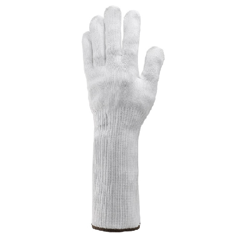 EUROCUT FOOD kesztyű, fehér, 13-as kötésű varrás nélküli UHMWPE és nejlon alapanyagú kesztyű, 20 cm hosszú mandzsetta; Élelmiszerrel érintkezhet: mindenféle élelmiszerhez használható; Mosható 70°c-on 20 alkalommal; Mindkét kézen használható; Darabonként vásárolható; OEKO-TEX® STANDARD 100 minősítés, CQ 1301/1, IFTH; Tartós antibakteriális hatás; Hosszú mandzsetta a jobb védelemért; Hő elleni védelem: kontakt hő 100°c-ig 15 másodpercig; Mindkét kézen használható; Színkódos mandzsetta a méretjelölésre.