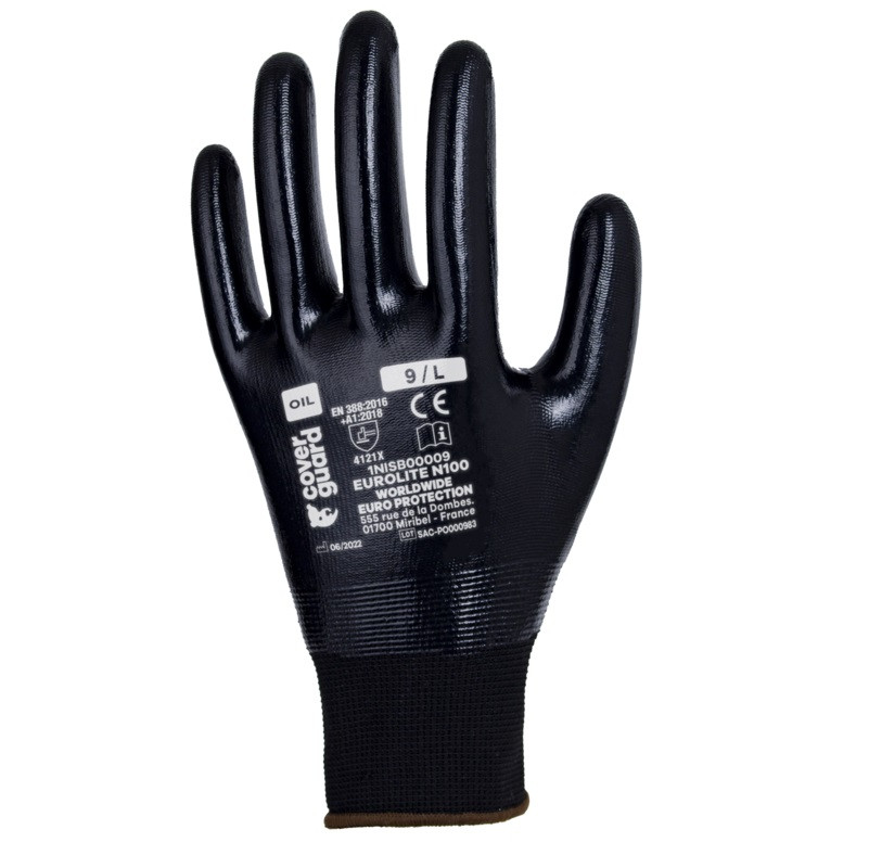 Coverguard Eurolite N100 PES kesztyű 11/2XL Fekete