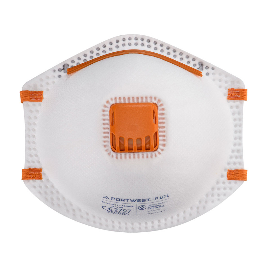 A Portwest FFP1 szelepes porálarc, mely védelmet nyújt porok, ködök és egyéb részecskék, továbbá vízbázisú aerosolok és olaj ellen.