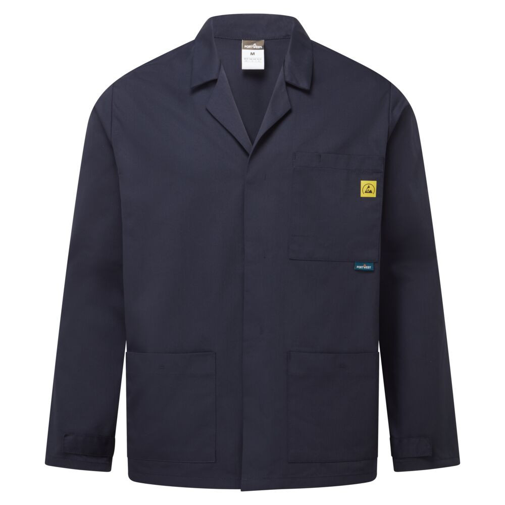 Anyagában antisztatikus kabát modell, mely megelőzi az elektrosztatikus kisüléseket. Kényelmes, ugyanakkor kiemelkedő védelmet biztosít. Jellemzői közé tartozik a rejtett patenros elülső rész, két alsó zseb, egy mellzseb és állítható mandzsetta.