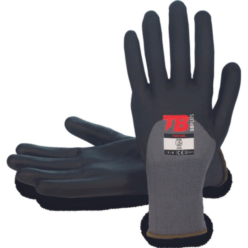 Kesztyű szürke, varrat nélküli nejlon béléssel. Fekete habszivacs nitril 3/4-es bevonat. Kötött csukló. 15-ös méret.